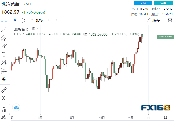 FX168财经报社(北美)讯 周一(11月15日),金价在美国国债收益率小幅上扬后回落,但仍在近期触及的五个月高位附近徘徊,受到通胀忧虑的支撑。