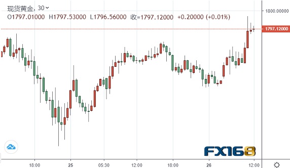 由于对新型毒株的担忧引发亚洲地区的避险交易,日本股市在亚洲领跌亚太股市,避险资产日元和黄金走强。美元/日元已经跌破115关口,现货黄金短线持续拉升,目前交投在1798美元/盎司左右。