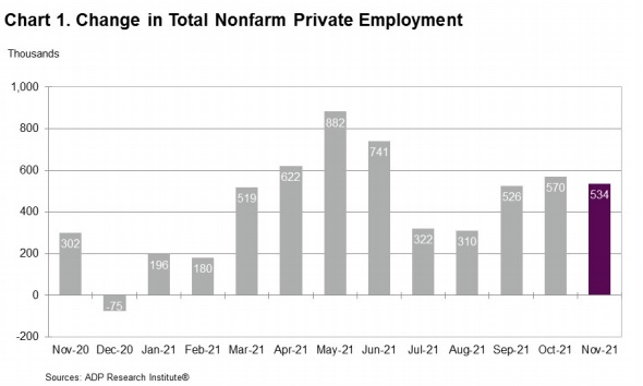 周三公布的ADP全美就业报告显示,11月份企业就业人数增加53.4万人,10月份修正为增加57万人。接受彭博调查的经济学家预期中值为增加52.5万人。