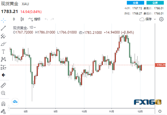 (现货黄金日线走势图,来源:FX168)