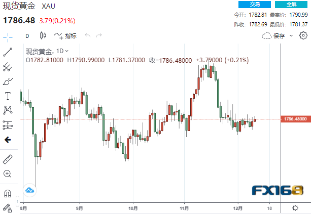 美市尾盘,现货黄金收报1786.48美元/盎司,上涨3.79美元或0.21%,日内最高触及1790.99美元高点,最低触及1781.37美元。上周,现货黄金收跌0.52美元或0.03%。
