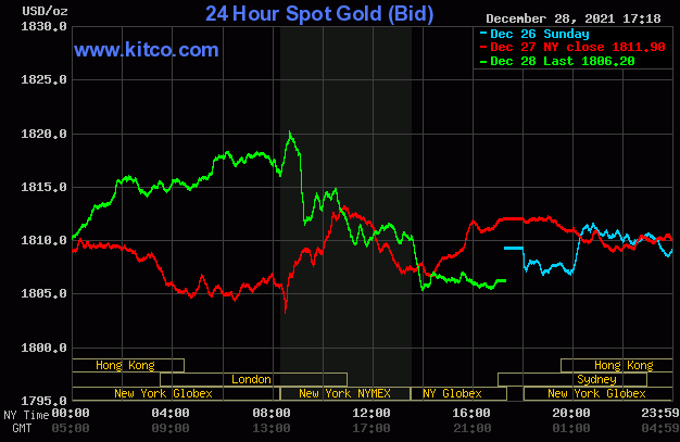 24K99讯 周二(12月28日)美市盘中,黄金和白银价格一度小幅走高,金价在早盘创出五周高点,白银创出四周高点。在这两个贵金属市场上,看涨的交易员都在关注这两种贵金属近期的价格上涨趋势。原油期货最近的大幅上涨也支撑了贵金属市场。2月黄金期货上涨3.60美元,报1,812.40美元;3月纽约商品交易所白银期货上涨0.151美元,报23.14美元。