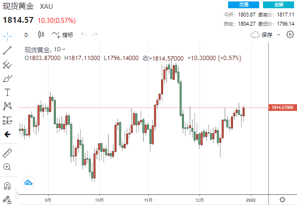 指标10年期美国国债收益率从一个月高位回落,但没有重大的推动市场走向的因素,许多交易商在新年假期前离场。这降低了持有黄金的机会成本,而黄金无需支付利息。