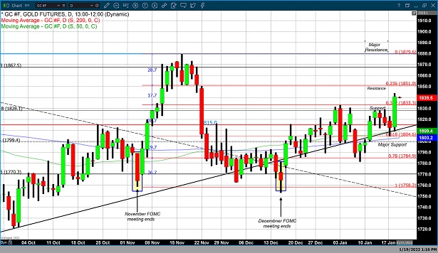 周三纽约商品交易所(COMEX)2月交割的黄金期货价格收盘上涨30.80美元,涨幅1.7%,报1843.20美元/盎司。根据FactSet的数据,按照最活跃合约价格计算,周三黄金期货创下2021年11月19日以来的最高收盘价,也是自12月以来的最大单日涨幅。