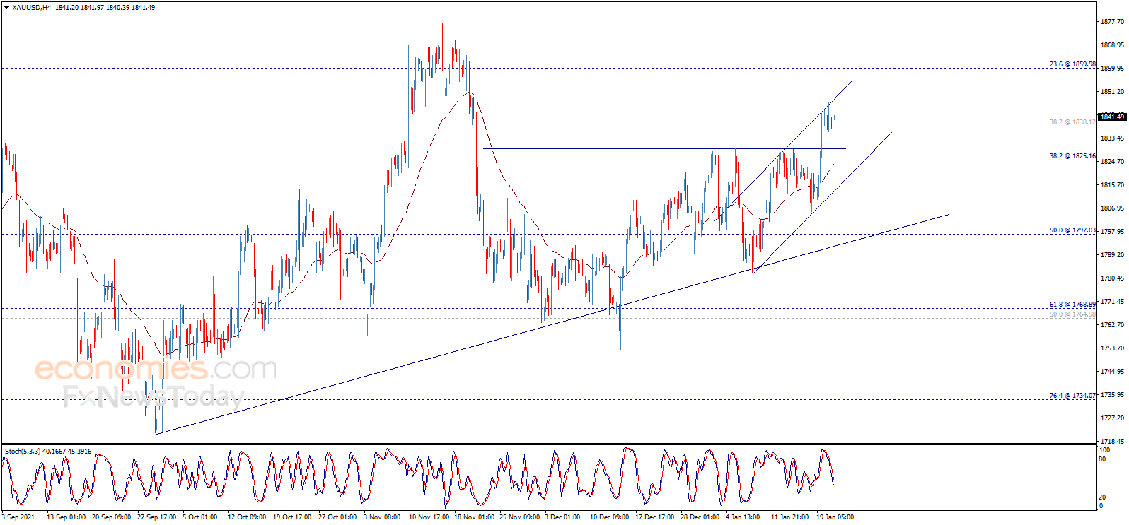 Economies.com在文章中写道,金价自昨日以来位于盘整区间内波动。值得注意的是,从4小时图来看,随机指标摆脱负面影响,并逐步获得正面动能,等待这一因素推动金价在日内继续看涨趋势。金价下一主要目标瞄准1860.00美元/盎司。