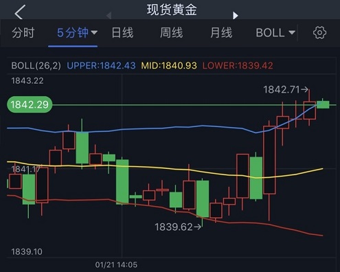 香港时间15:21,现货黄金报1842.29美元/盎司。