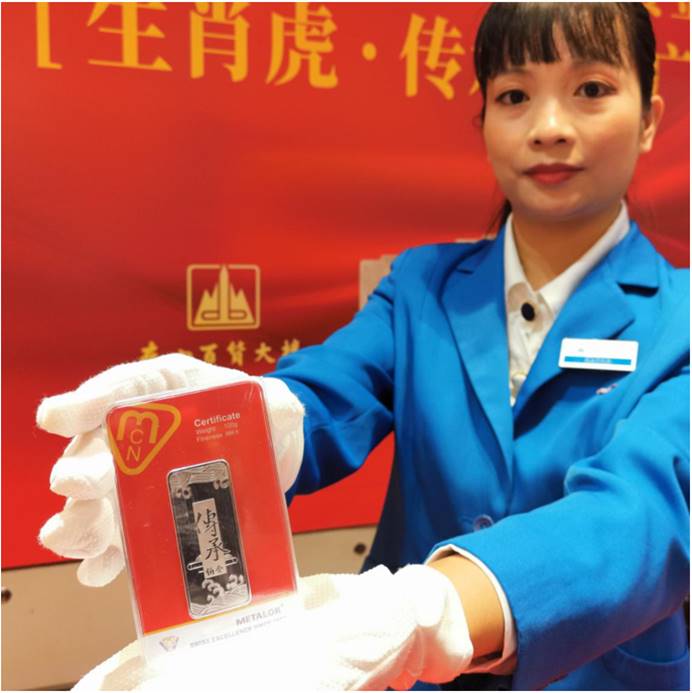 此次发售的生肖虎传承金,一套有3种规格,100克、50克和10克,铂金纯度999.5以上,由世界铂金投资协会和金鼎黄金合作开发,瑞士美泰乐苏州工厂生产制造。