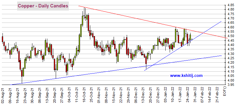 铜方面,Kshitij咨询服务团队表示,铜期货小幅下跌。目前可能维持在4.55-4.35美元/磅的窄幅区间内。铜价需要朝上述区间任何一端实现突破,以令短期内的进一步走向变得更加清晰。
