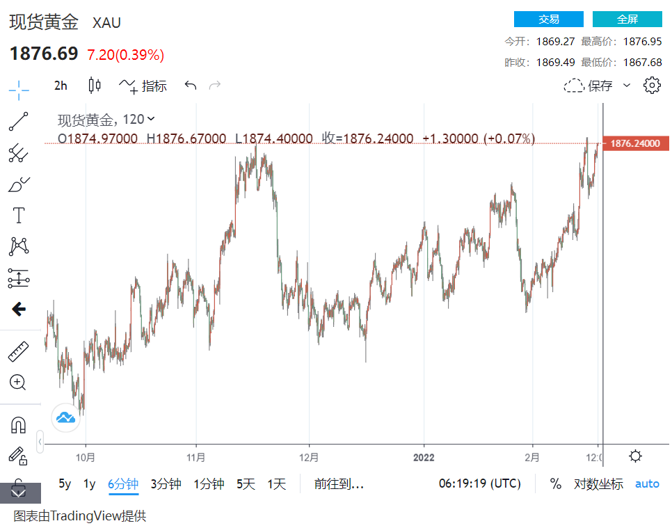 受此影响,全球股市加速跳水,日经指数一度杀跌1.2%,纳指期货跌幅一度扩大至1%以上,恐慌指数VIX期货短线急拉,日内涨超5.8%,报25.90。美、布两油期货拉升,半小时内累计涨超1.4美元,现分别报93.10和94.16美元/桶,国际金价也快速拉升至1877美元附近。