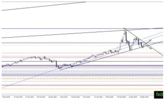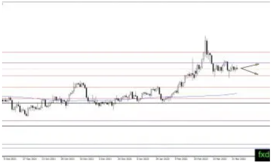 随着价格从三角形底部反弹,原油价格将继续在三角形区域内波动。目前,预计盘整将继续,交易商将等待其突破区间。我们仍然认为看涨突破将会发生,原油将继续向上移动,目标是130.00美元上方。