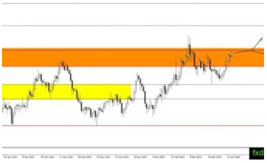 银价的上涨势头尚未停止。目前,银价正在上升,接近26.00美元的阻力位。如果收盘价高于该阻力位,那么交易者可以预期长期看涨势头的延续。另一方面,如遭遇主要的看跌拒绝将导致价格下跌并重新测试25美元水平。