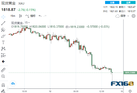 周五(5月13日)亚市早盘,现货黄金15分钟下挫10美元,逼近1810美元/盎司。