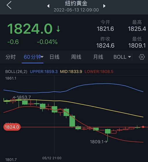 周五亚市早盘,黄金期货短线一度大幅跳水,最低触及1809.10美元/盎司。