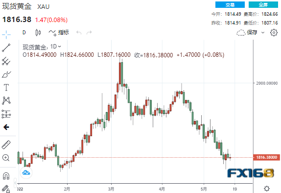 美市尾盘,现货黄金收报1816.38元/盎司,上涨1.47美元或0.08%,日内最高触及1824.66美元/盎司,最低触及1807.16美元/盎司。