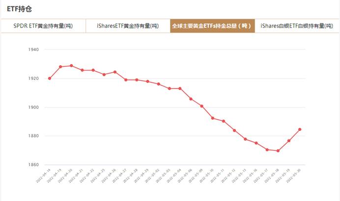 对全球8大主要黄金ETF的监控数据显示,截至2022年5月20日,全球8大黄金ETFs持仓总量为1884.467吨,与上一交易日增加7.87吨。