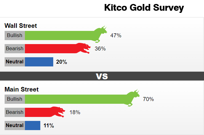 本周,15位华尔街分析师参与了Kitco的黄金调查。在这些参与者中,有7位分析师(47%)预计金价下周将上涨。与此同时,有5位分析师(36%)对近期金价持看空预期,另有3位分析师(20%)对金价持中性看法。