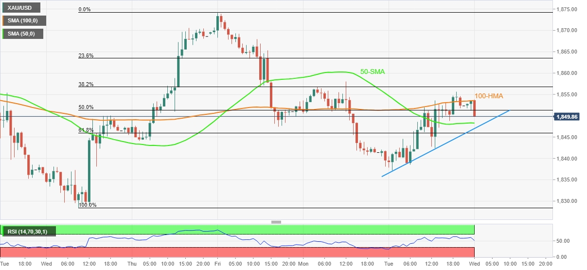 Panchal写道,从小时图来看,金价从100周期均线回落,加之相对强弱指标(RSI)走低,空头正努力夺回控制权。然而,50周期均线和短期支撑线(分别位于1848美元/盎司和1847美元/盎司附近)眼下对金价构成支撑。