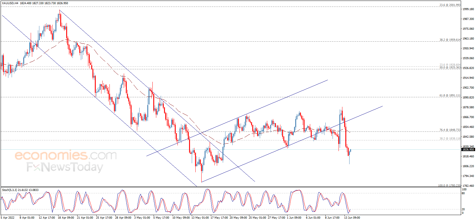 (现货黄金4小时图 来源:Economies.com)