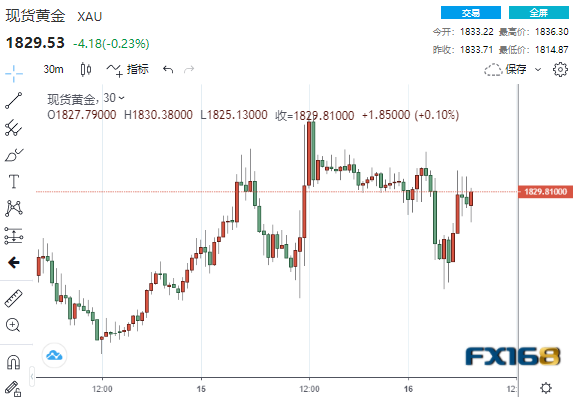 美市早盘,现货金自日低1814.87美元持续攀升,一度跳升至1833.11美元,距离日高不远。