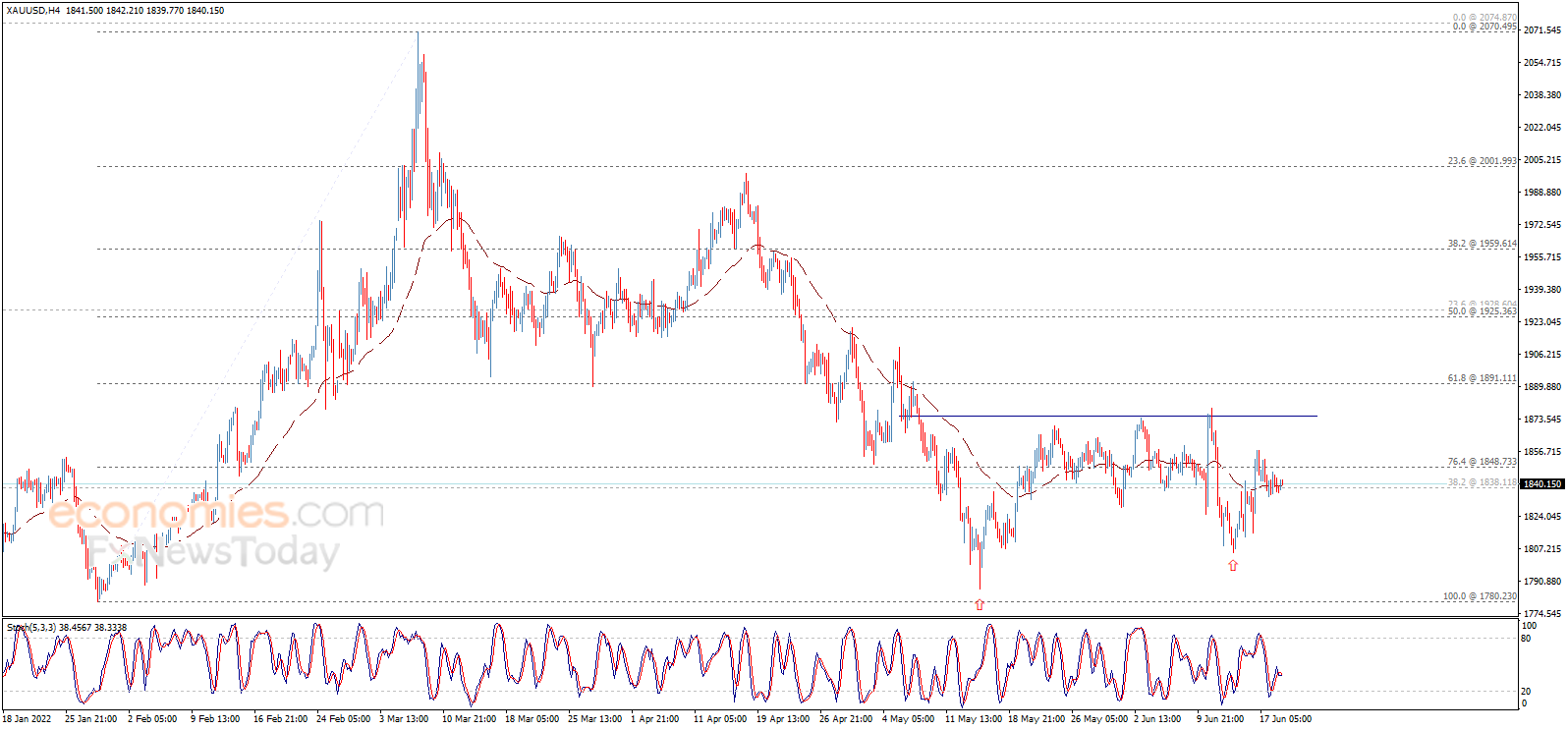Economies.com在文章中写道,金价自昨日以来在狭窄区间内波动,徘徊在EMA 50指标附近。只要金价保持在1830.00美元/盎司上方,那么看涨趋势情景在未来一段时间仍然有效。从4小时图来看,随机指标传递正面信号。此外,近期金价呈现低点抬高的走势,这也利好金价前景。