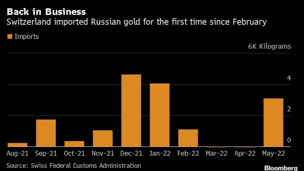 瑞士联邦海关总署的数据显示,今年5月,逾3吨黄金(价值约2亿美元)从俄罗斯运往瑞士,几乎所有黄金都被标记为用于提炼。这是自今年2月乌克兰战争爆发以来,两国之间首次有记录的运输。