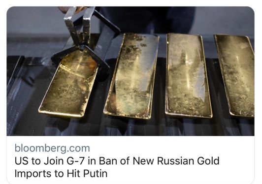根据报道,这项禁令将首次适用于从俄罗斯运往G7国家的黄金。