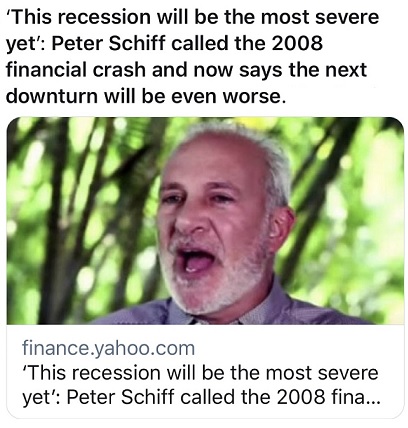 希夫的看法与鲁比尼类似。希夫在周一的一条推文中写道:“任何认为这次衰退将是温和的人都不理解衰退。”