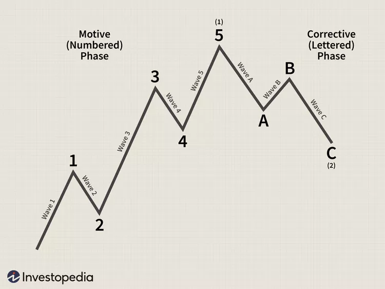 艾略特波浪理论创造了8个波浪来完成一个周期。前5个波浪被标记为动机相位,由三个脉冲波(波1、波3和波5)组成,它们沿主要趋势方向移动。在这些波浪之间是两个反波,它们的移动方向与标记为第2波和第4波的趋势相反。