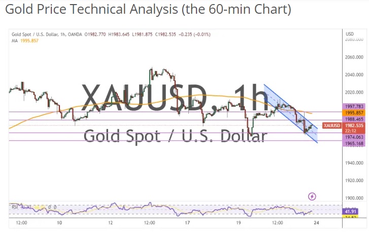 Kitonyi在文章中写道,金价上周五一度大跌至1970美元/盎司附近的关键支撑,随后反弹至1985美元/盎司附近。在60分钟走势图中,黄金的价格继续在下行通道内交易。金价仍低于100小时移动平均线。然而,上周五晚些时候的反弹阻止金价进一步下跌至14小时相对强弱指数(RSI)的超卖水平。