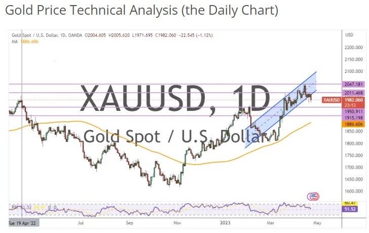 24K99讯 周一(4月24日)亚市早盘,现货黄金在上周五重挫后目前保持稳定,金价现报1983美元/盎司附近。知名财经网站FXDailyReport分析师Nicholas Kitonyi撰文,对黄金后市走势进行分析。