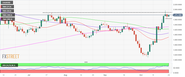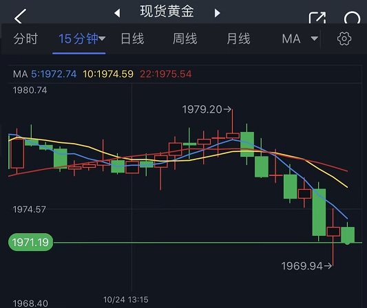 24K99讯 周二(10月24日)欧市盘中,现货黄金短线突然跳水,金价刚刚一度跌破1970美元/盎司关口。FXStreet分析师Dhwani Mehta最新撰文,对金价技术前景进行分析。