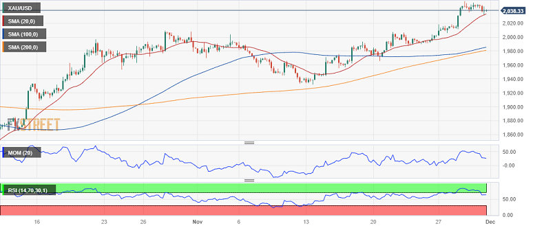 24K99讯 周五(12月1日)亚市盘中,现货黄金短线突然加速上升,金价目前正逼近2045美元/盎司。FXStreet首席分析师Valeria Bednarik最新撰文,对黄金技术前景进行分析。