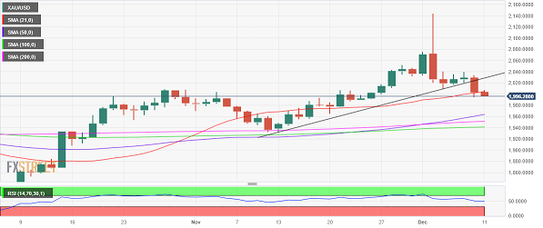 24K99讯 周一(12月11日)欧市盘中,现货黄金维持日内下跌走势,金价现报1992美元/盎司附近,日内重挫约12美元。FXStreet分析师Dhwani Mehta最新撰文,对金价技术前景进行分析。
