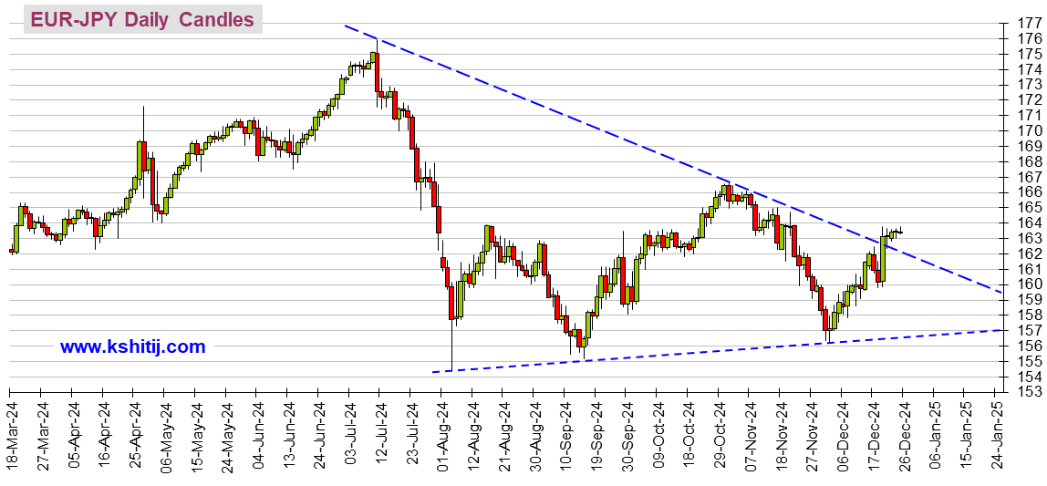 欧元/日元正缓慢上升。若决定性地突破164,这可能使前景在短期内看涨向166-167。