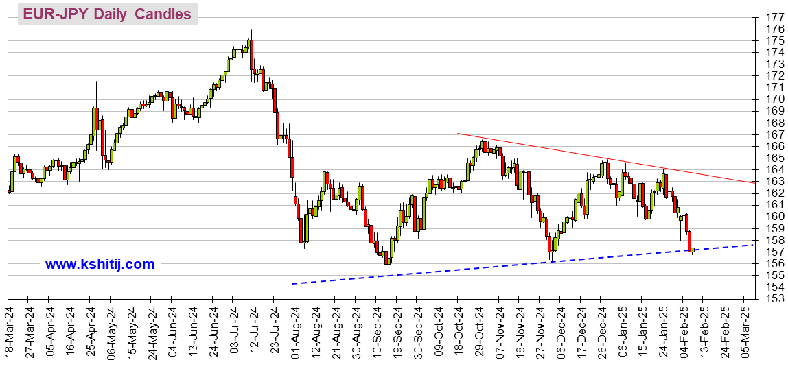 欧元/日元一度触及低点156.76,然后自该位反弹。目前,倾向于认为汇价守住156附近的支撑位,并在未来几个交易日反弹向162.50。密切关注156附近的价格走势。