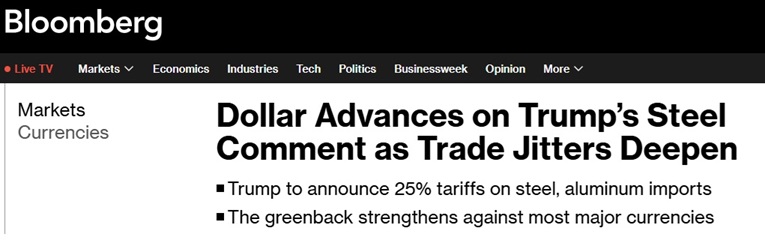 FX168财经报社(亚太)讯 周一(2月10日)亚市早盘,在美国总统特朗普(Donald Trump)表示将宣布对钢铁和铝进口征收关税后,美元兑大多数主要货币上涨。大宗商品货币在早盘交易中下跌,美国股市期货下滑,亚洲股市开盘后也普遍下挫。