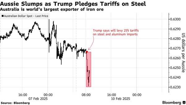 特朗普表示,他将于周一宣布对进口商品征收25%的关税,该关税适用于从所有国家进口的金属。特朗普是在前往美式足球联盟NFL年度冠军赛超级杯途中,于空军一号对同行记者团公布此消息。