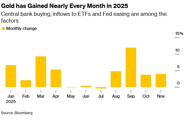 受美联储降息预期提振 黄金有望连续第四个月上涨