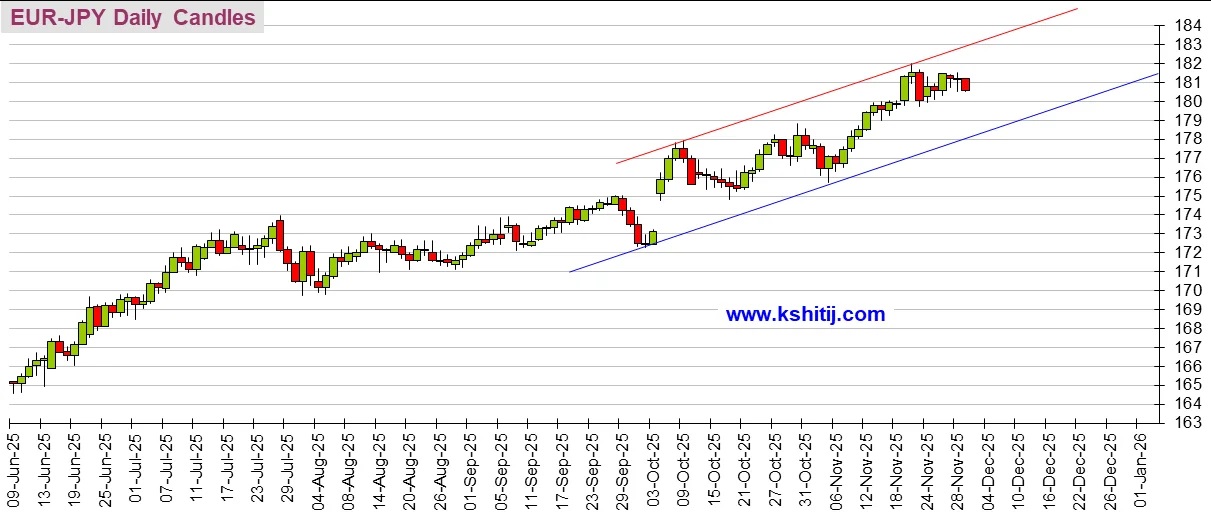 欧元/日元在182-180区间内下跌。预计短期支撑位在179-178附近,如果跌势持续,该支撑位可能会受到考验,之后才会出现反弹。
