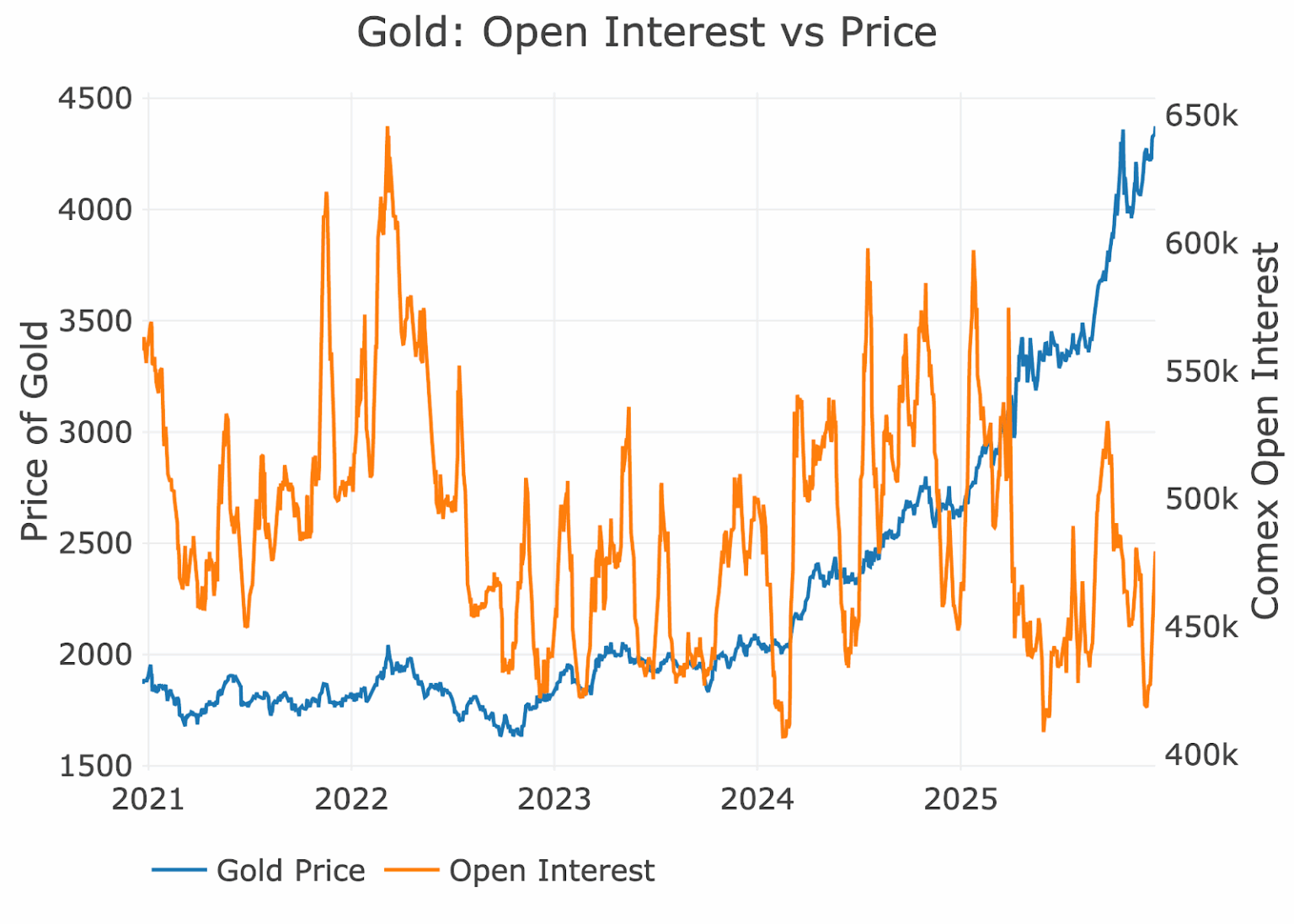 这表明,当前推动价格的核心力量并非高杠杆投机者,而更可能来自现货需求、长期资金配置以及对宏观政策环境的再定价。