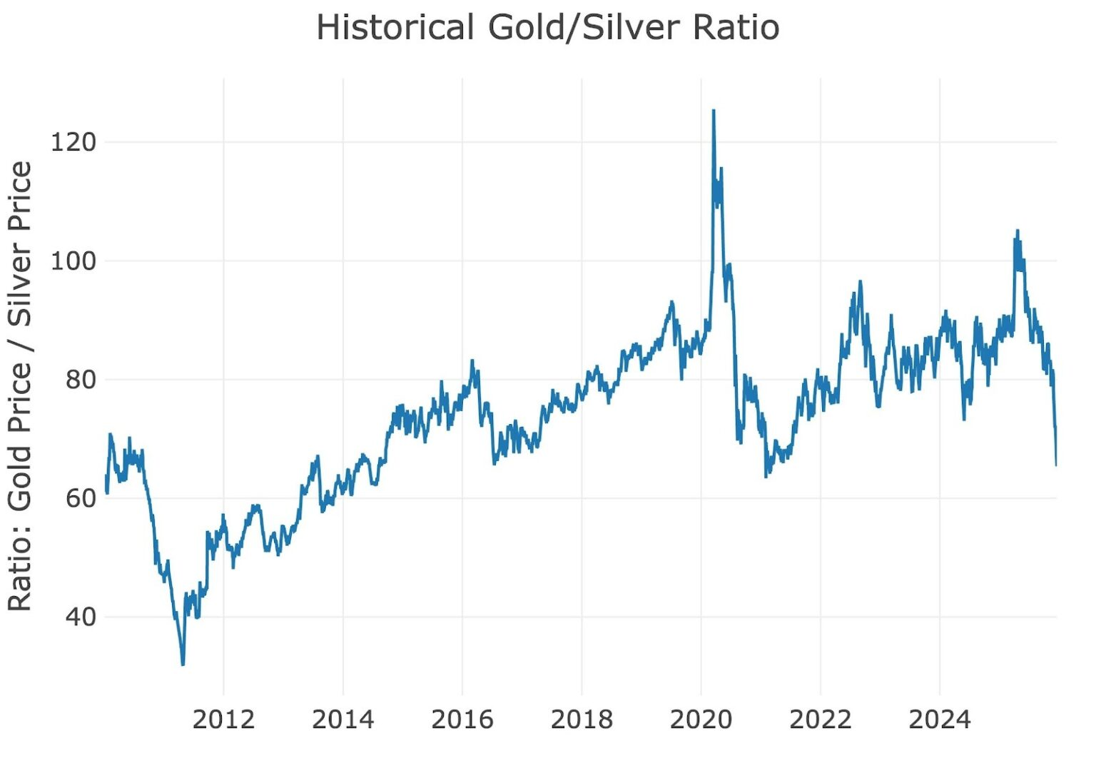 金银比:近期快速下行至约66,为近十余年低位,短期或存在修复需求,但也可能反映白银结构性走强。