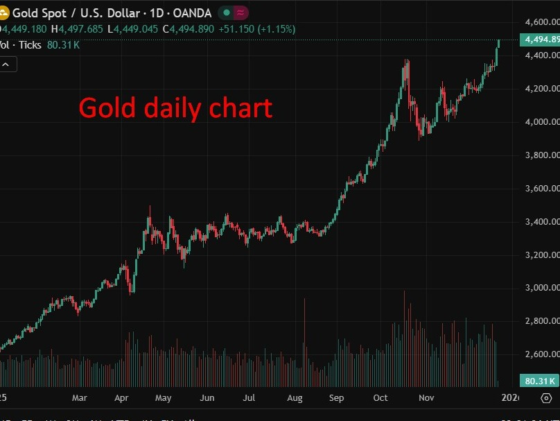 金价朝着4500美元迈进