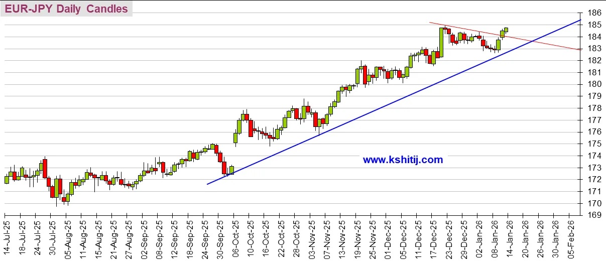 欧元/日元目前在182-185区间的上端附近交易。若要测试186-187区域附近的阻力位,则需要突破185。