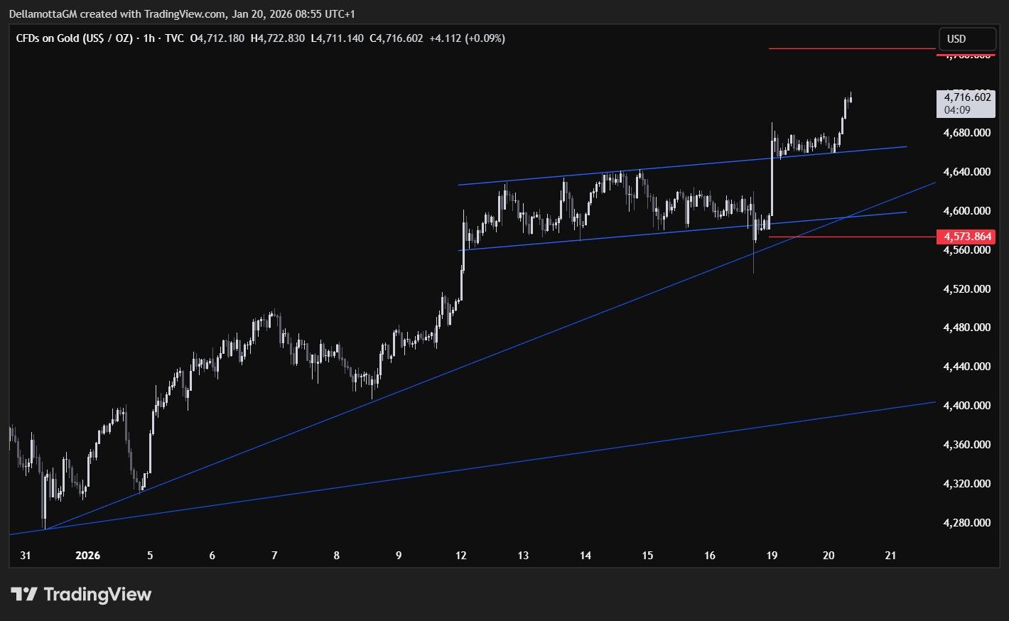 在特朗普近期围绕格陵兰问题持续升级的背景下,黄金今日延续涨势并再创历史新高,这一地缘政治紧张局势继续成为贵金属的强劲利多。