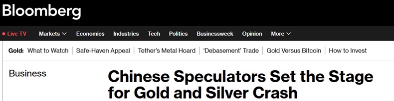 史诗级暴跌震撼全球市场!彭博:中国投机者为黄金和白银的崩盘埋下伏笔