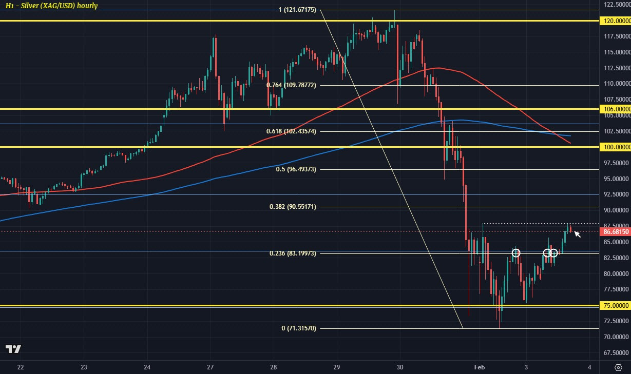 Capital.com高级市场分析师Kyle Rodda表示:“如果考虑到过去几周市场表现得相当非理性,那么说现在的价位大致回到了某种‘合理/公允价值’区间,是有道理的。当前价格把黄金和白银带回了1月下旬(1月下半月初)时的水平。”