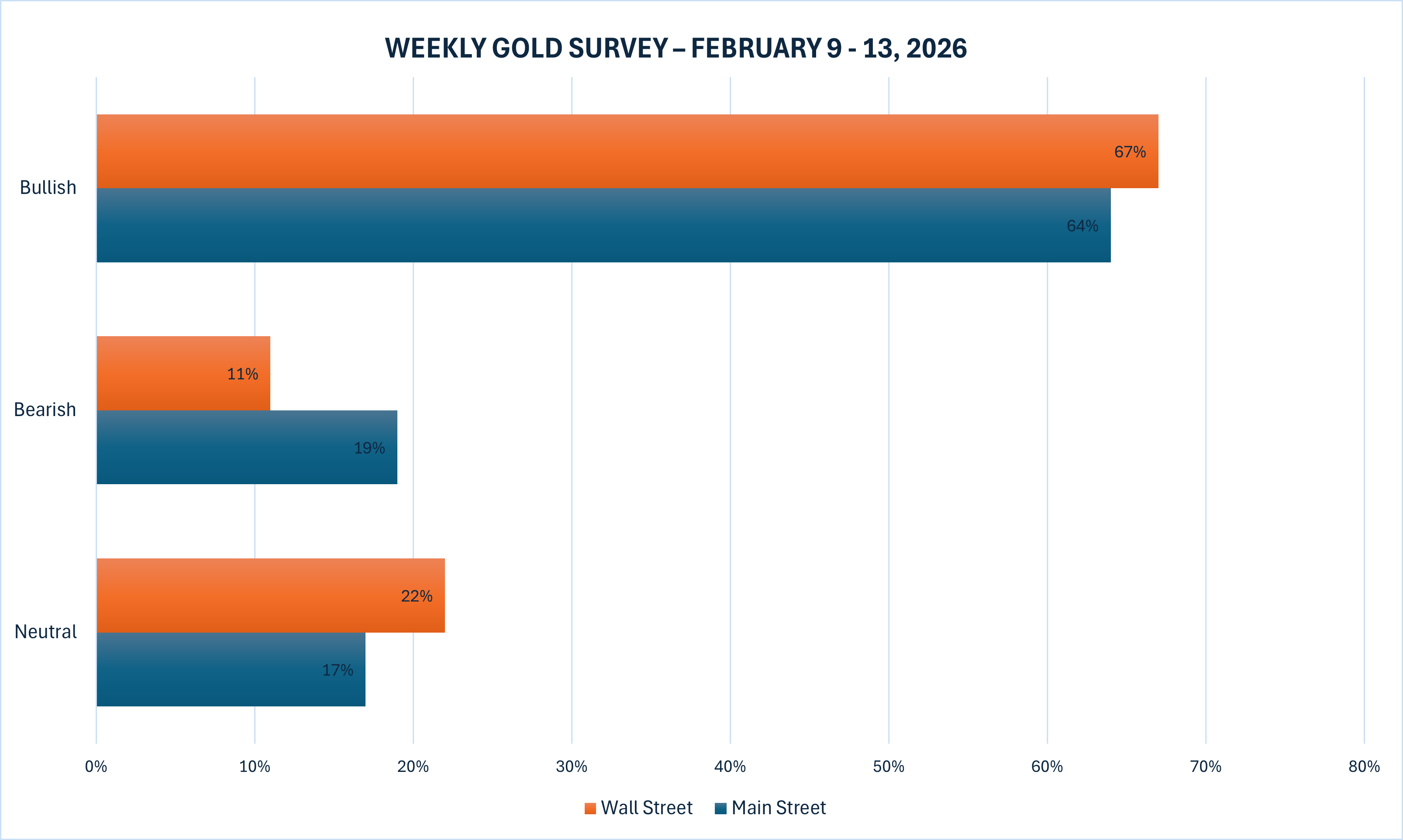 最新一期Kitco News每周黄金调查显示,华尔街对黄金短期走强的信心重新回升;而主街(散户)投资者虽然仍保持多数看多,但仍能感受到上周亏损带来的“刺痛”。