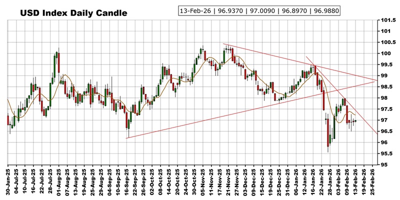 FX168财经报社(亚太)讯 周五(2月13日)亚市盘中,美元指数基本持稳,目前略高于97.00水平;现货黄金价格位于4982美元/盎司左右。本交易日,投资者将聚焦美国CPI,预计将引发市场大行情。Kshitij咨询服务团队(Kshitij Consultancy Service)周五最新撰文,对黄金、美元指数、欧元/美元、欧元/日元、美元/日元、澳元/美元、英镑/美元以及美元/人民币后市走势进行前瞻分析。