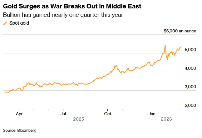 24K99讯 周一(3月2日)亚市早盘,现货黄金价格暴涨。中东战争动摇市场,促使投资者纷纷涌向更安全的资产。美国总统特朗普最新表示,对伊朗军事行动可能持续约4周。在早盘交易中,黄金上涨逾2%,至5390美元/盎司上方。此前一周,随着美...