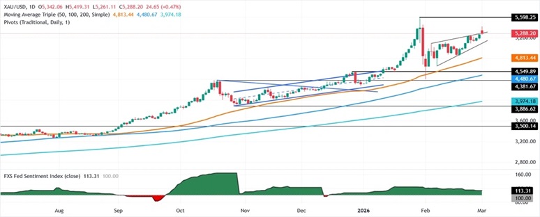 Valencia补充道,相反,如果金价重挫至5300美元/盎司下方,首个支撑位将是2月27日高点转为支撑的5279美元/盎司,其次是5250美元/盎司。一旦跌破这些支撑位,下一个目标位将是5200美元/盎司。
